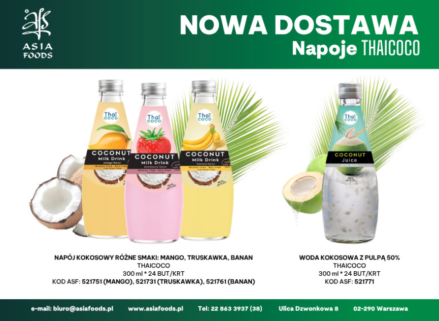 Aby zapewnić dostępność towaru na nadchodzący szczyt sezony letniego, Asia-Foods przygotowało duże stany magazynowe 2 najpopularniejszych linii produktów Thaicoco: