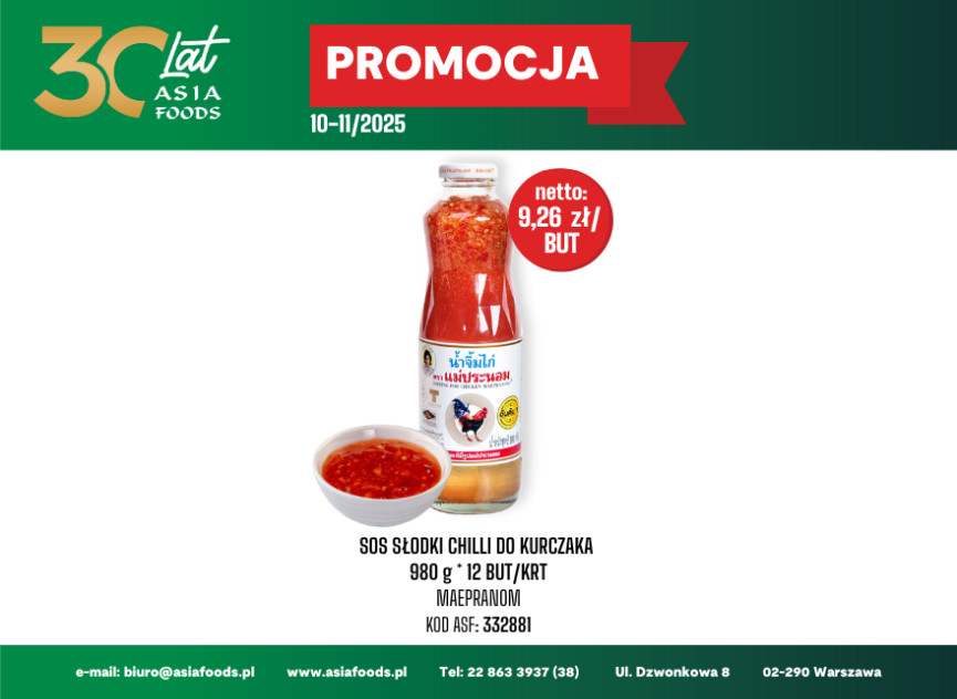 Przygotowany według oryginalnej tajskiej receptury, sos Maepranom zachwyca delikatną słodyczą, lekką kwasowością i subtelną ostrością - idealny do potraw smażonych, grillowanych, marynat lyb szybkich dań słodko-kwaśnych.