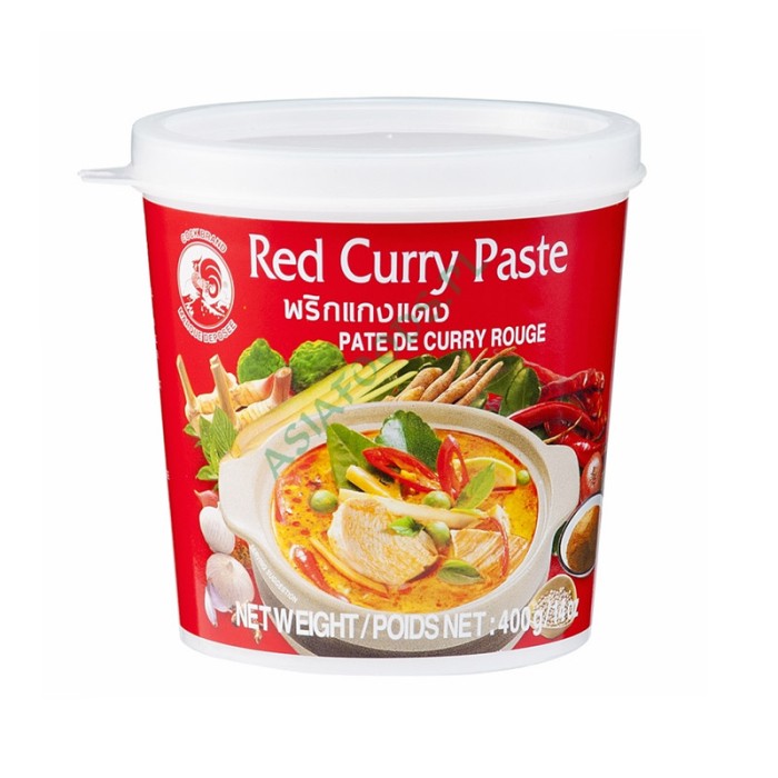 Składniki: Suszone czerwone chili (28%), Trawa cytrynowa, Czosnek, Szalotka, Sól, Skórka limonki kaffir, Galangal, Przyprawy (Nasiona kolendry, Kmin w proszek)