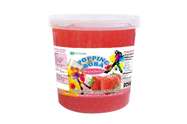 Składniki: Woda, Fruktoza, Mleczan wapnia (E327), Alginian sodu (E401), Skrobia acetylowana (E1420), Guma ksantanowa (E415), Regulator kwasowości: Kwas jabłkowy (E296), Aromat truskawkowy, Sorbinian potasu (E202), Czerwień allura (E129) *E129 może mieć negatywny wpływ na możliwości koncentracji i aktywność u dzieci.
