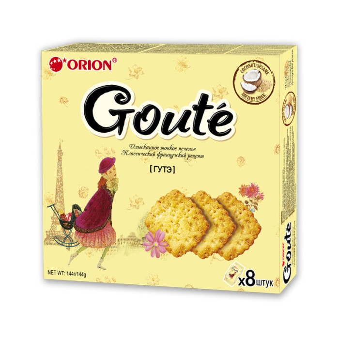 Składniki: Mąka pszenna, Cukier, Woda, Rafinowany i perfumowany olej kokosowy (9%), Tłuszcz cukierniczy (Rafionowane i perfumowane oleje roślinne: palmowy i słonecznikowy), Płatki kokosowe (Pieczone wiórki kokosowe, Cukier) (5,4%), Prażone ziarna sezamu, Odtłuszczone mleko w proszku, Mleko pełnotłuste w proszku, Skrobia pszenna, Środki spulchniające (E503ii, E500ii), Sól. Glukoza, Substancja stabilizująca (E170), Posypka z solą (Sól, Hydrolizowana skrobia kukurydziana), Aromaty, Substancja zagęszczająca (E415), Przeciwutleniacz (E223)